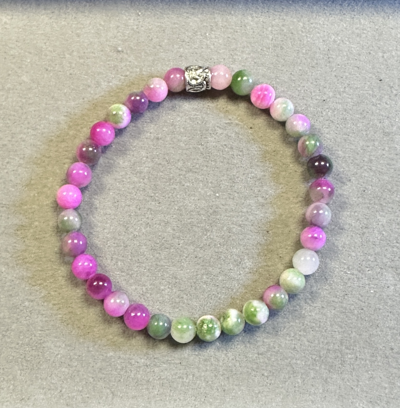 This handcrafted 6mm Pink Persian Jade bracelet offers a delicate, refined profile designed for everyday wear. The smaller 6mm bead size creates a lightweight, elegant look that feels comfortable on the wrist and ideal for stacking.