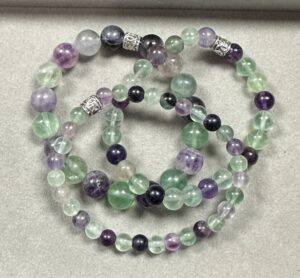 Purple & Green Fluorite Triple Stack Bracelet Set