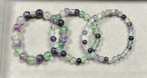 This handcrafted Purple & Green Fluorite Triple Stack features three individually assembled stretch bracelets designed to be worn together for depth, color, and presence. Each bracelet is made with natural polished fluorite beads, showcasing beautiful transitions between soft greens and rich purples.