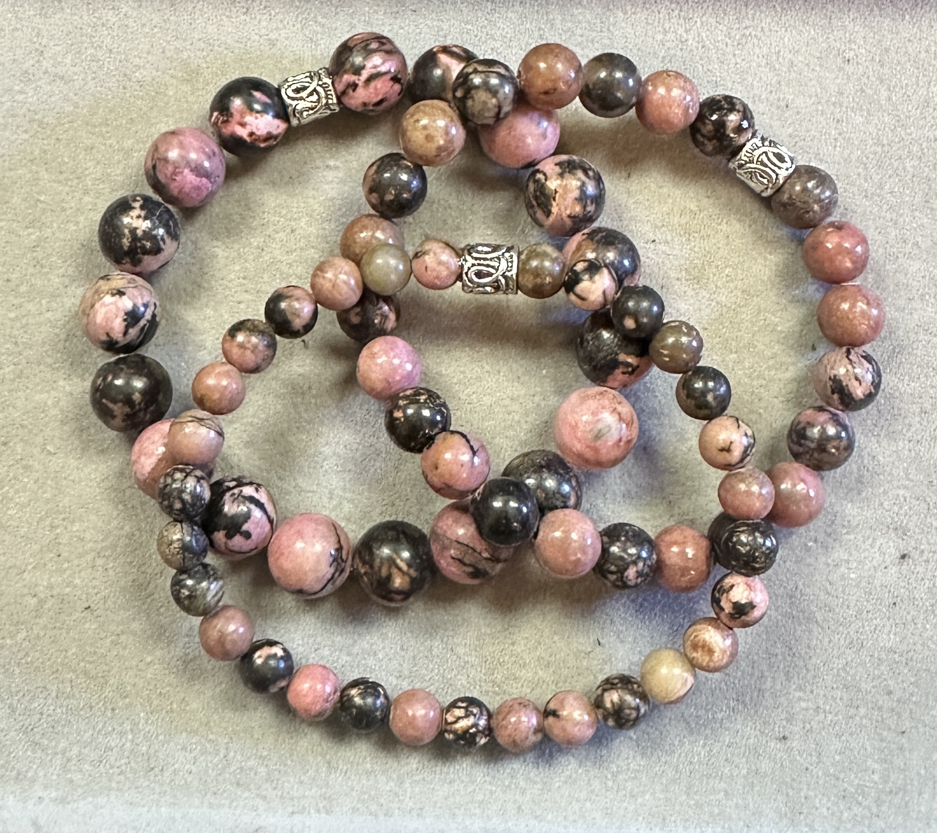 Black Lace Rhodonite Triple Stack Bracelets (3)