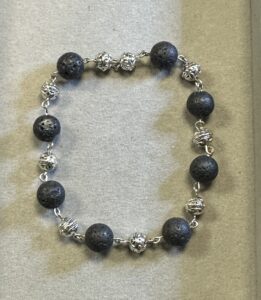 Each Black Lava Stone and Tibetan Bead Wire Bracelet is handmade by Marcus R. Geiser Sr at The Jewelers Bench inside Alexis Home.